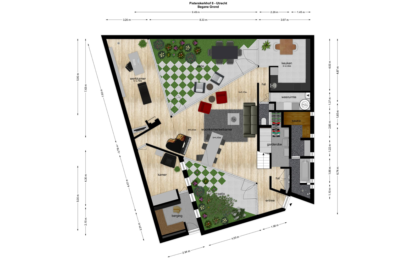 • High ceilings ranging from 2.30m to 5.15m