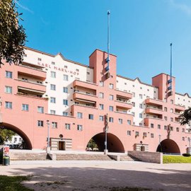 With a total length of approximately 1,050 meters, it is the longest continuous residential building in the world. It is a protected historic monument and has also been designated by the city of Vienna as a protected architectural zone. Today, a permanent exhibition Red Vienna can be explored in Waschsalon im Karl-Marx-Hof (Washhouse No. 2), originally home to bathtubs, showers, and the building’s water reservoir, offering visitors a fascinating glimpse into the city’s innovative social history.