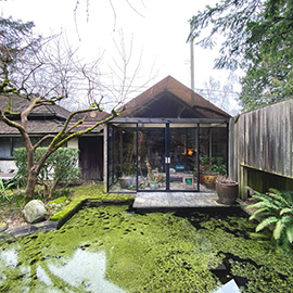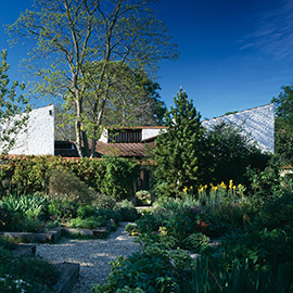 Behind a weathered cedar fence lies the secret garden of famous Canadian architect Arthur Erickson. His modest house, which uses existing structures, overlooks a contemplative garden, with ponds, and mature Pacific Northwest trees. This composition of house and garden is one of his most unique design achievements.
