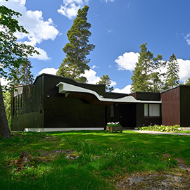 Villa Kokkonen, the home of renowned composer Joonas Kokkonen, was designed by his close friend Aalto and is the only artist studio he ever created. It is also a rare example of a private home designed in his late career (1969). House and interior bare many characteristics of his style and several unique lighting fixtures are designed by Aalto himself.