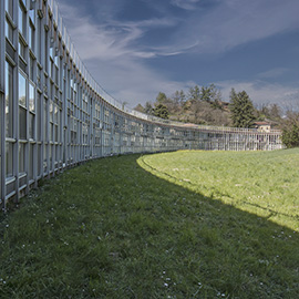 Welcome to Casa Museo olivettiana in Ivrea! Talponia ('mole town'), designed in 1968 by Gabetti and Isola, is a striking semi-circular, two-storey residential complex built into an artificial slope to house Olivetti’s international workforce. Stretching 300 meters underground, it contains 13 duplexes and 72 simplex apartments—one of which is now open to visitors as a house museum.