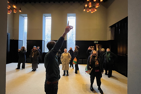 Back in Glasgow, the group visited The Mackintosh House, a meticulous reconstruction of Charles and Margaret’s former home, recreated by architect William Whitfield within the Hunterian Art Gallery at the University of Glasgow. The visit was followed by a specialist lecture by curator Joseph Sharples, focusing on Margaret Macdonald’s artistic contributions and her vital role in Mackintosh’s work. A system of ramps to reach its front door was never built, which makes it a little odd now and reminds us of the installation “House” by artist and sculptor Rachel Whiteread.