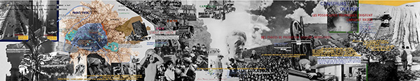 She does this most explicitly in a photomontage shown in Krefeld. The Great Misery of Paris (1936) documents the social hardships and urban challenges faced by Paris between the wars. The collage combines newspaper photos, maps, documentary images, and typographic elements into a layered visual indictment.